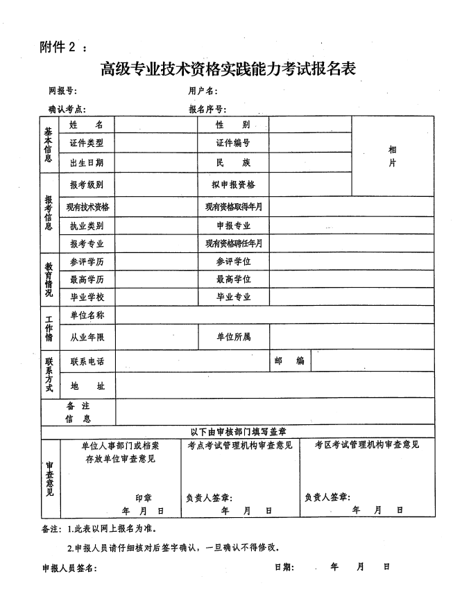黑龍江省2017年衛生高級專業技術資格實踐能力考試報名表