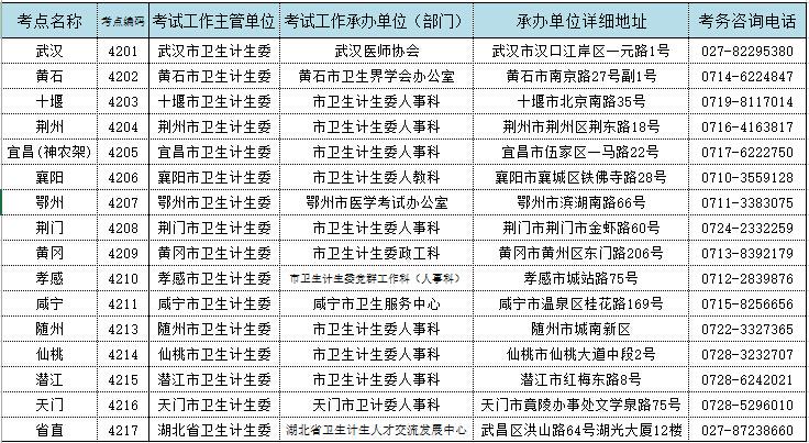 湖北省衛生專業技術資格、護士執業資格考試各考點聯系方式表