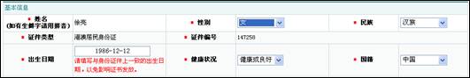 1)性別、民族、健康狀況、國籍為系統標準代碼,只能選擇錄入。