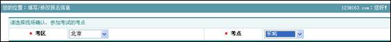 進入“填寫/修改報名信息”界面,選擇現場確認、參加考試的考點。見下圖: