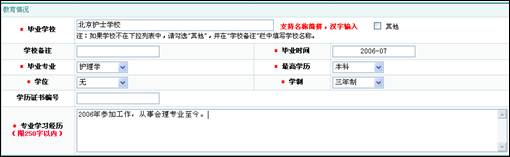 3) 通過下拉菜單選擇畢業專業、最高學歷、學位、學制。
