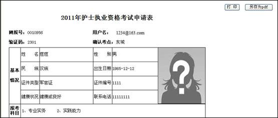 點擊“打印申請表”,系統將報名信息以表格形式顯示,考生可根據實際情況進行打印或另存為pdf格式打印。