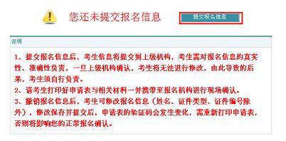考生報考信息完成后,將報名信息提交報名點或考點,后期方可進行現場確認。見下圖: