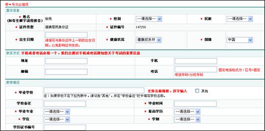 檢查無誤后,點擊“確定”,進入報考信息填寫頁面,如下圖
