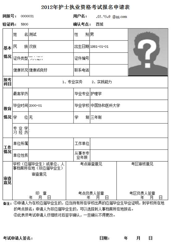 如果輸入信息正確無誤,點擊“確定”,即可進入報名信息填寫頁面。見下圖: