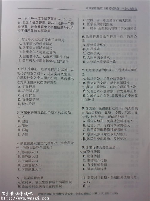 2010年初級(jí)護(hù)師資格考試真題及答案——專業(yè)實(shí)踐能力
