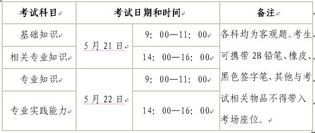 (二)紙筆考試。其他52個專業的4個科目仍采用紙筆作答方式進行考試。考試時間安排如下: