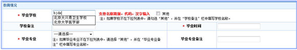 注意:在畢業學校輸入中不允許使用空格和回車鍵。