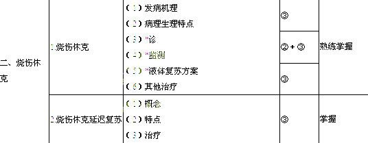 | 2.燒傷后免疫失衡的調理 | 燒傷常用免疫調理藥物的使用 | ③ | 了解 | |