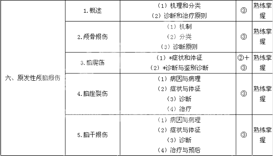 | 7.腦缺血性疾病 | (1)病理生理 (2)臨床分類與臨床表現(xiàn) (3)診斷和鑒別診斷 (4)外科治療 |