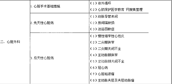 2016年胸心外科學主治醫師中級考試大綱-專業實踐能力