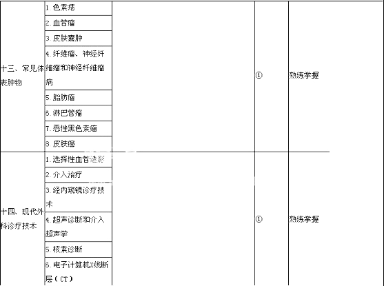 | 3.術后并發癥 | 常見并發癥及處理原則 | ① | 熟練掌握 | |