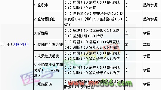 | 3.小兒外科液體療法 | (1)小兒體液代謝(2)小兒外科補液原則(3)小兒外科輸液方法 | ③ | 熟練掌握 | |