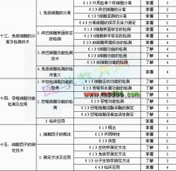 臨床免疫學和免疫學檢驗部分 單 元 細 目 要 點 要 求 科 目 一、概論 1.基本概念 (1)免疫概念 掌握 (2)免疫功能 掌握 1 (3)免疫學檢驗及應用 熟練掌握 1 2.免疫應答 (1)概念 掌握 1 (2)免疫應答基本過程 掌握 1 (3)體液免疫應答 掌握 1 (4)細...
