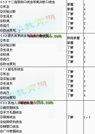 | 二、醫(yī)學(xué)蠕蟲 | 1.線蟲 | (1)線蟲概述形態(tài)、生活史 | 了解 | 1 |