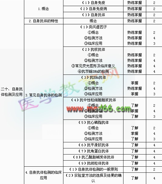 | 8.免疫學(xué)檢驗(yàn) | (1)臨床免疫學(xué)內(nèi)涵 | 熟練掌握 | 2 | |