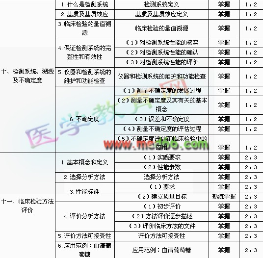 | 十三、室間質量評價 | 1.室間質量評價的起源和發展 | 室間質量評價的起源和發展 | 掌握 | 2,3 |