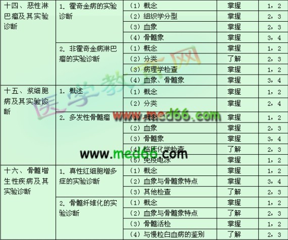 | 2.血細胞超微結構檢查的臨床應用 | (1)白血病細胞的鑒別 | 了解 | 2,3 | |
