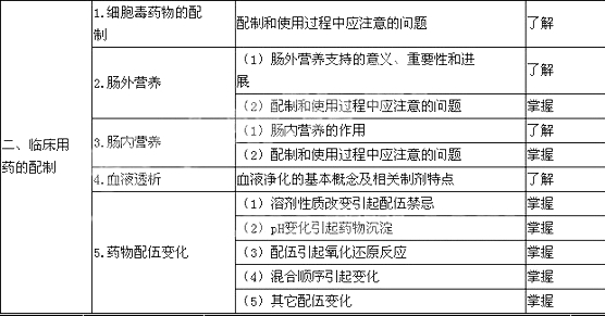 | 3.處方調(diào)配 | (1)處方調(diào)配的一般程序 | 熟練掌握 | |