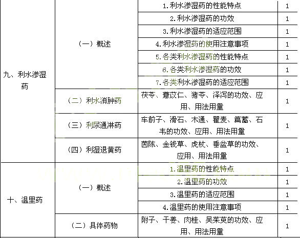 | (二)具體藥物 | 陳皮、青皮、枳實(shí)、木香、沉香、川楝子、烏藥、香附的功效、應(yīng)用、用法用量 | 1 | ||